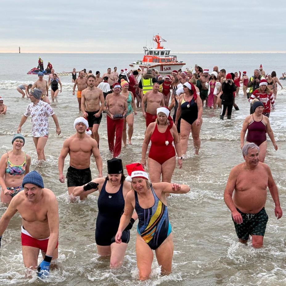 2026 wird es das 40. Mal sein, dass sich am 2. Weihnachtsfeiertag rund 150 "Verrückte" Insulaner und Urlauber am Westerländer Strand in das vier bis sechs Grad kalte Nass stürzen - vorausgesetzt das Wetter spielt mit. Die Anzahl der "Wiederholungstäter" ist dabei hoch. Das traditionelle Event des Insel Sylt Tourismus-Service wird begleitet von unzähligen Schaulustigen an der Promenade und dazu spielt in der Konzertmuschel der Sylter Chantychor die Hymne "Sonne über Sylt". Da schmeckt der Glühwein nach dem Baden umso besser. Ein Riesenspaß, der viele "Wiederholungstäter" jährlich aufs Neue begeistert!